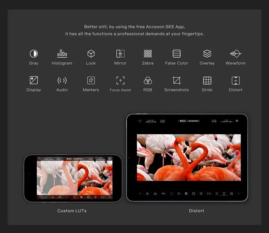 Precisa de um monitor maior? Conecte um iPad ou iPad Pro mais recente ao SeeMo usando um Accsoon PowerCage e você construiu um monitor de diretor de nível profissional com todas as mesmas ferramentas de aplicativo.